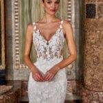 Trouwjurk DELINE van het merk Adriana Alier. Deze romantische jurk met A-lijn rok van zachte tule valt soepel om je heen. Het prachtige lijfje heeft een illusion halslijn met kanten kapmouwtjes. Ook de transparante rug met knoopjes is een eyecatcher. Het kant van de sweetheart top loopt deels door over de rok.